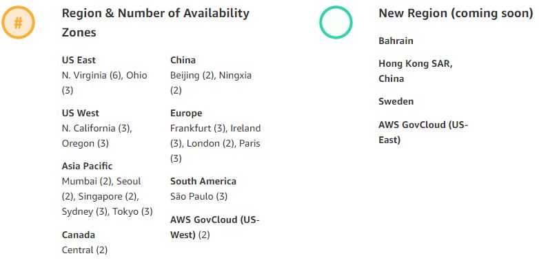 Below image lists the 18 regions and 49 Available Zones as of 7th Jan 2018. Not all the regions are accessible from the Global AWS account. For example, China and AWS GovCloud regions cannot be accessed from global AWS account due to regional and compliance issues. Separate URLs, credentials and endpoints are available for China and GovCloud regions.
